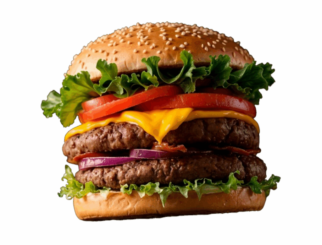 ,domáca žemľa, hovädzie mäso 160g, syr cheddar, šalát, kyslá uhorka, červená cibuľa, paradajka, BBQ omáčka, majonéza
