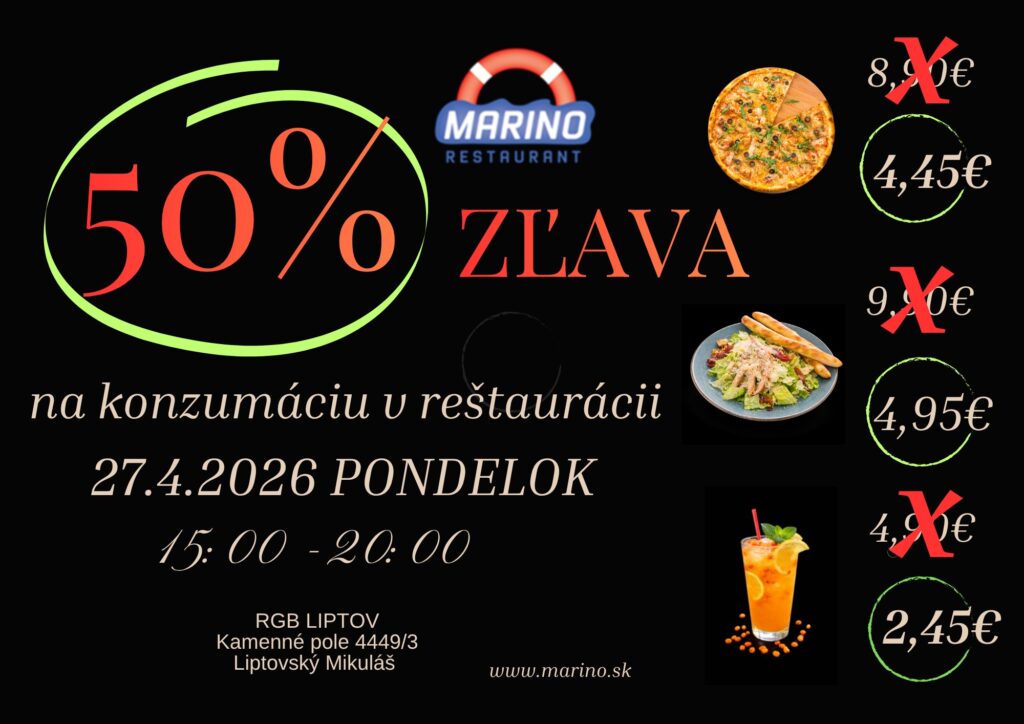 , Caesar šalát Marino (listový šalát, caesar dressing, slaninové chipsy, krutóny, kuracie prsia, parmezán, pizza štangle)